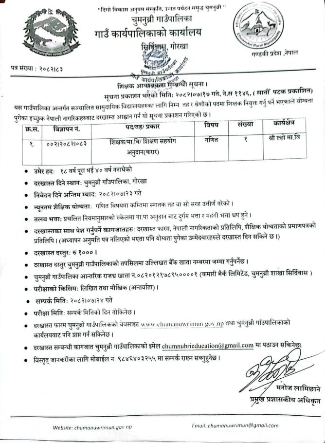 » शिक्षक आवश्यकता सम्बन्धी सूचना