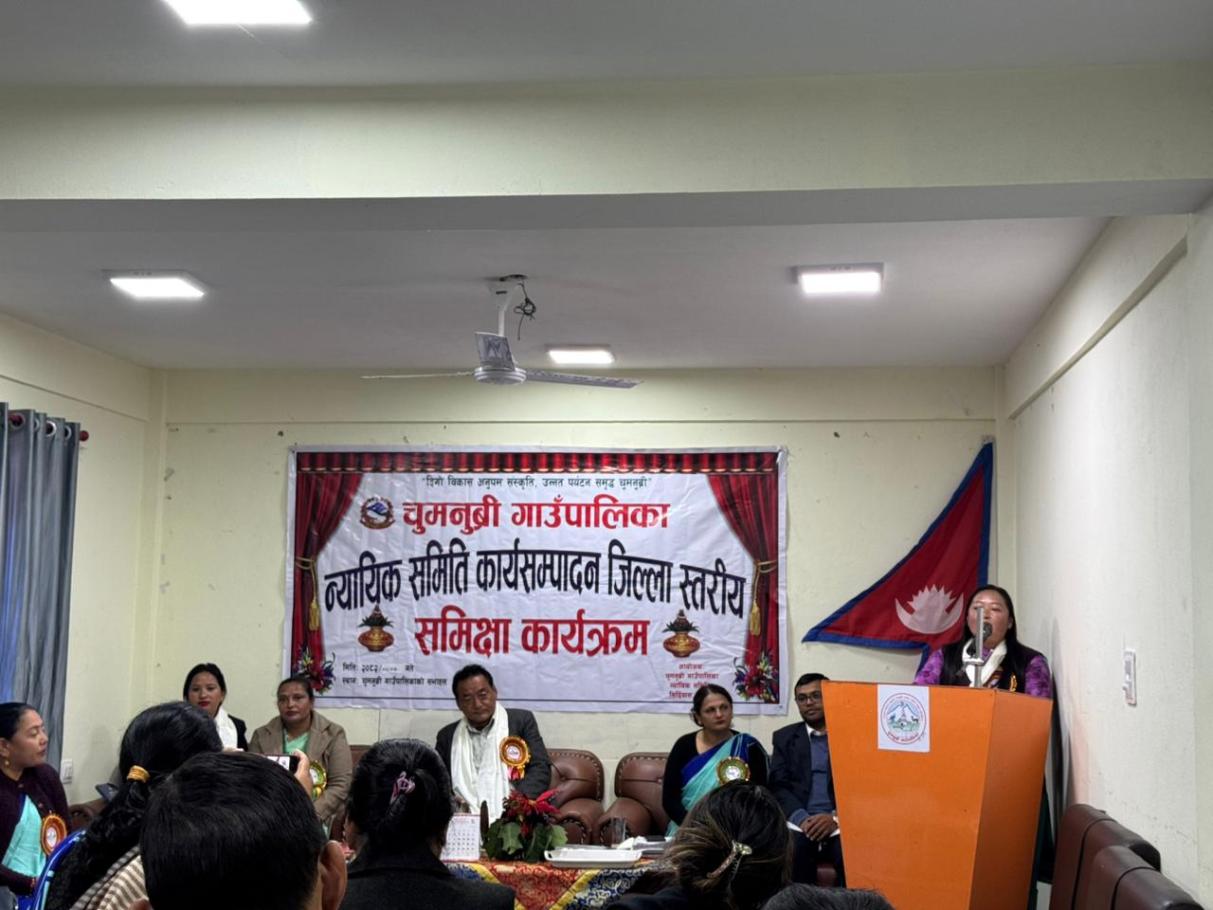 गोरखा जिल्ला न्यायिक समितिको कार्यसम्पादन समिक्षा कार्यक्रम चुमनुब्री गाउँपालिकामा मिति २०८२ मंसिर ७ गते गोरखा जिल्लाका स्थानीय तहका न्यायिक समितका पदाधिकारीहरू, प्रमुख प्रशासकीय अधिकृतहरू, न्यायिक समिति सहजकर्ताहरू, जिल्ला समन्वय समिति उपप्रमुख लगायतको उपस्थितिमा तपसलिका निर्णय तथा प्रतिवद्धता जारी गरी सफलता पूर्वक सम्पन्न भयो ।