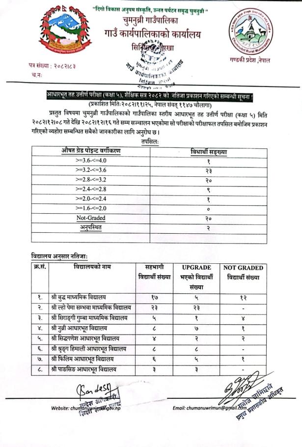 गाउँपालिका स्तरीय आधारभूत तह कक्षा ५ र ८ को परिक्षाको नतिजा प्रकासन सम्बन्धी सूचना