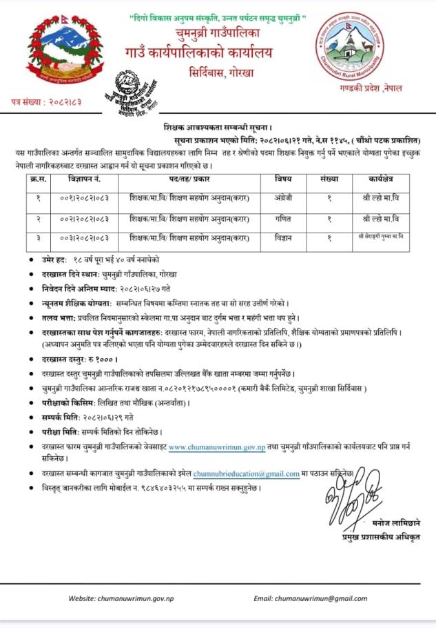 » शिक्षक आवश्यकता सम्बन्धी सूचना